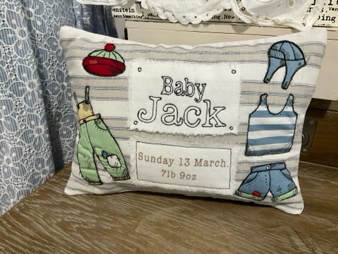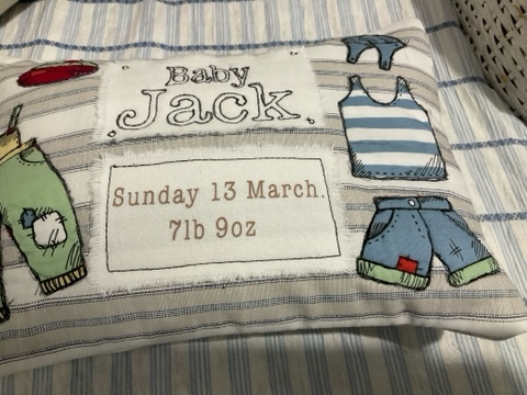 It is a combination of free motion sewing and using my CRICUT to print and iron on the wording. I’m so pleased with the result.