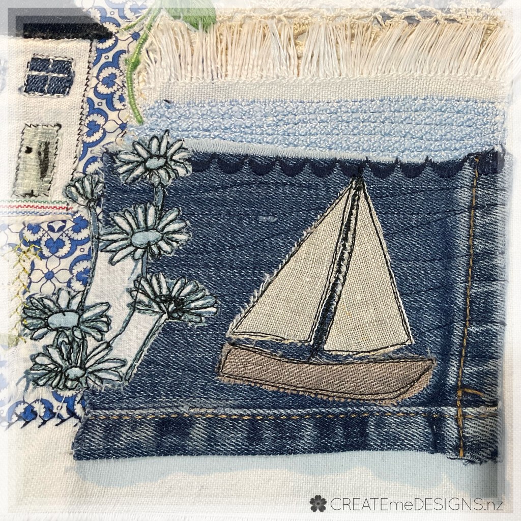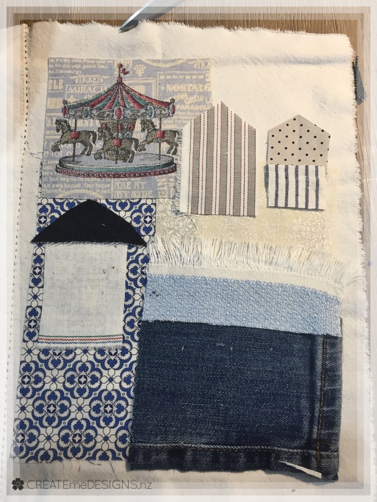 I’ve done a Beach Life fabric art before and totally enjoyed it and felt it was time to do another. A warm but wet day in Maketu, NZ, created the perfect mood …. Oh and a day off!