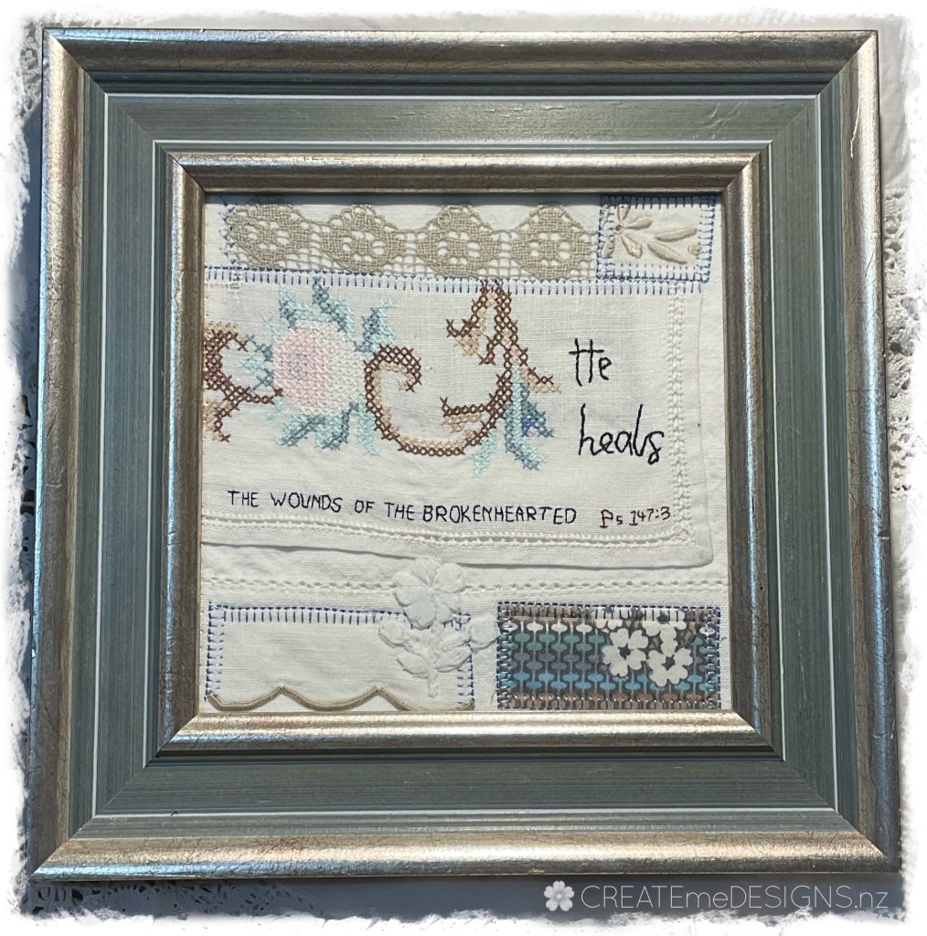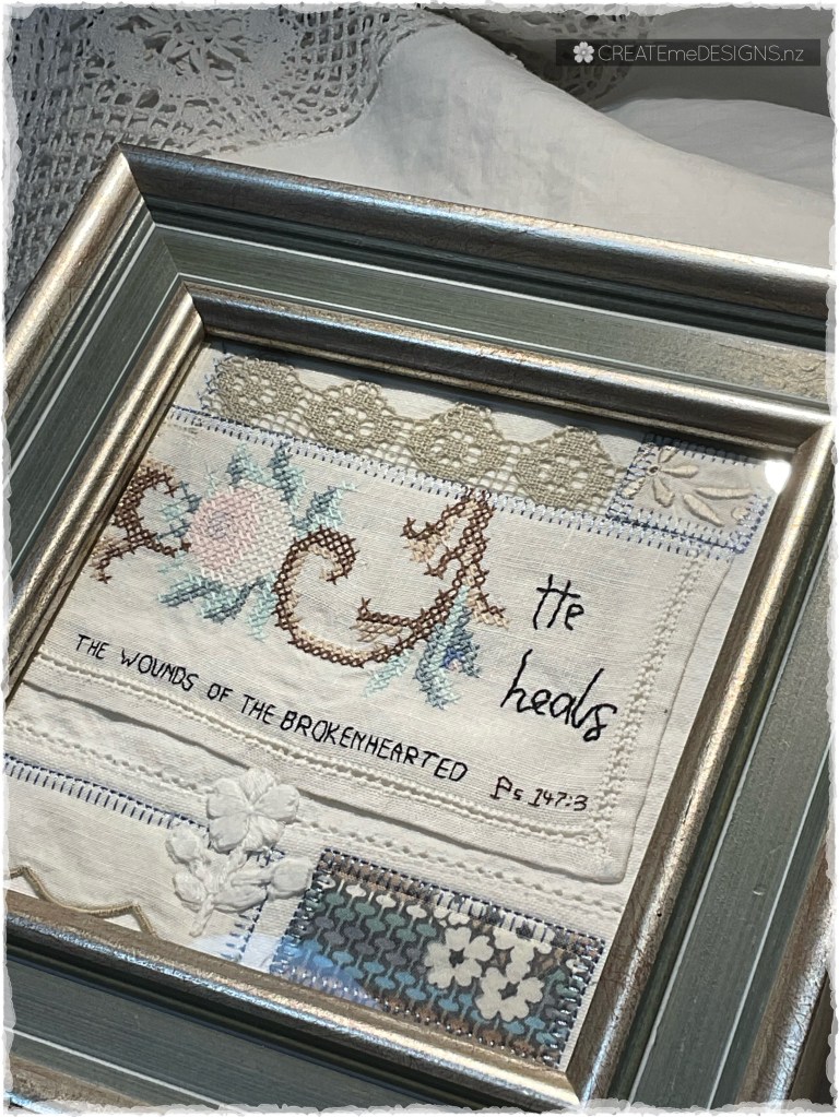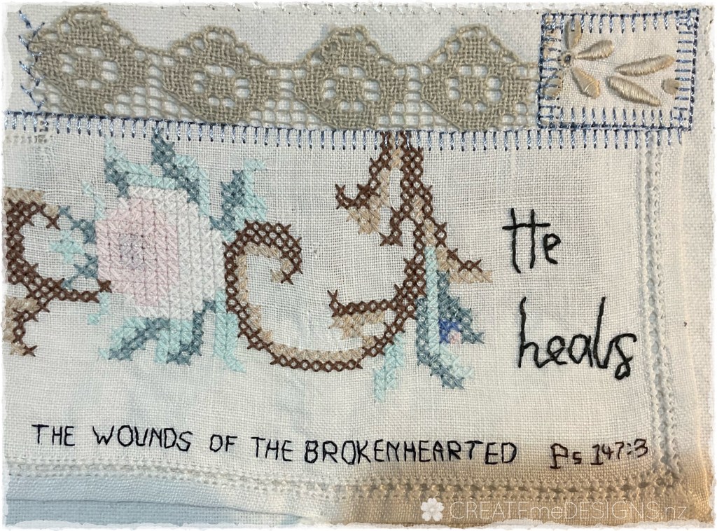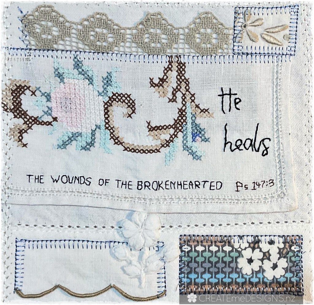 I felt the Scripture “He heals, the wounds of the broken-hearted” captured the mood of the colours … soothing, calming and gentle to the soul.